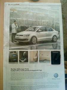 The paper was speaking to me because the Volkswagen has given the advertisement with audio. They have pasted a voice player (as we normally seen in birthday cards with audio) in the paper along with advertisement . They have used the same technology and promoted their product